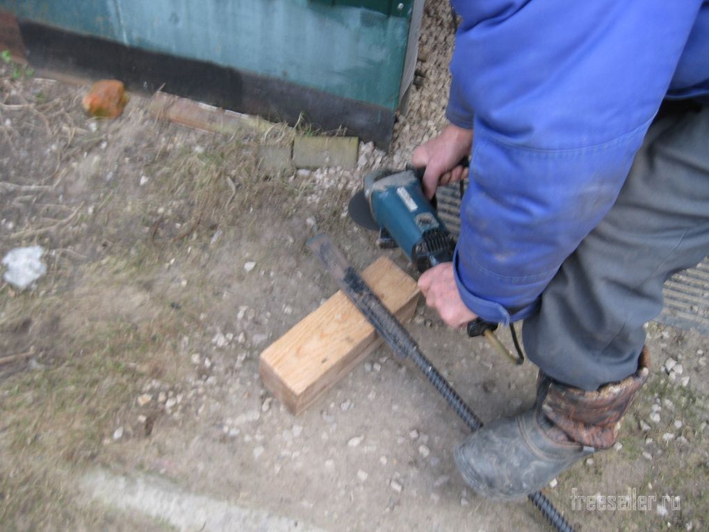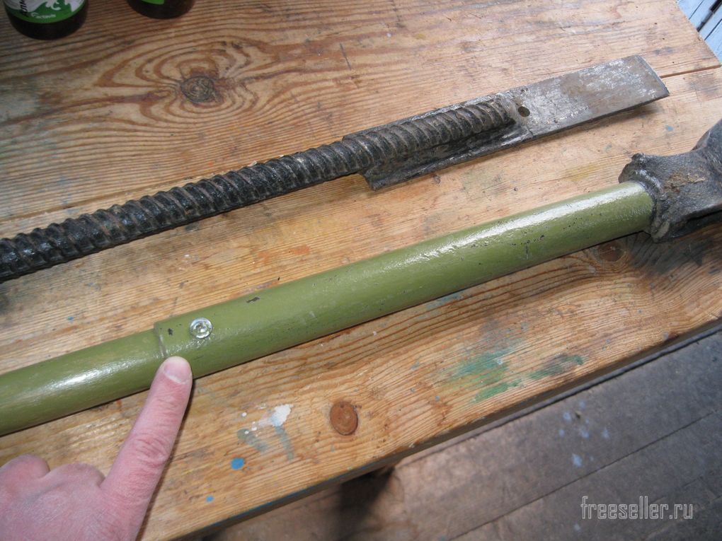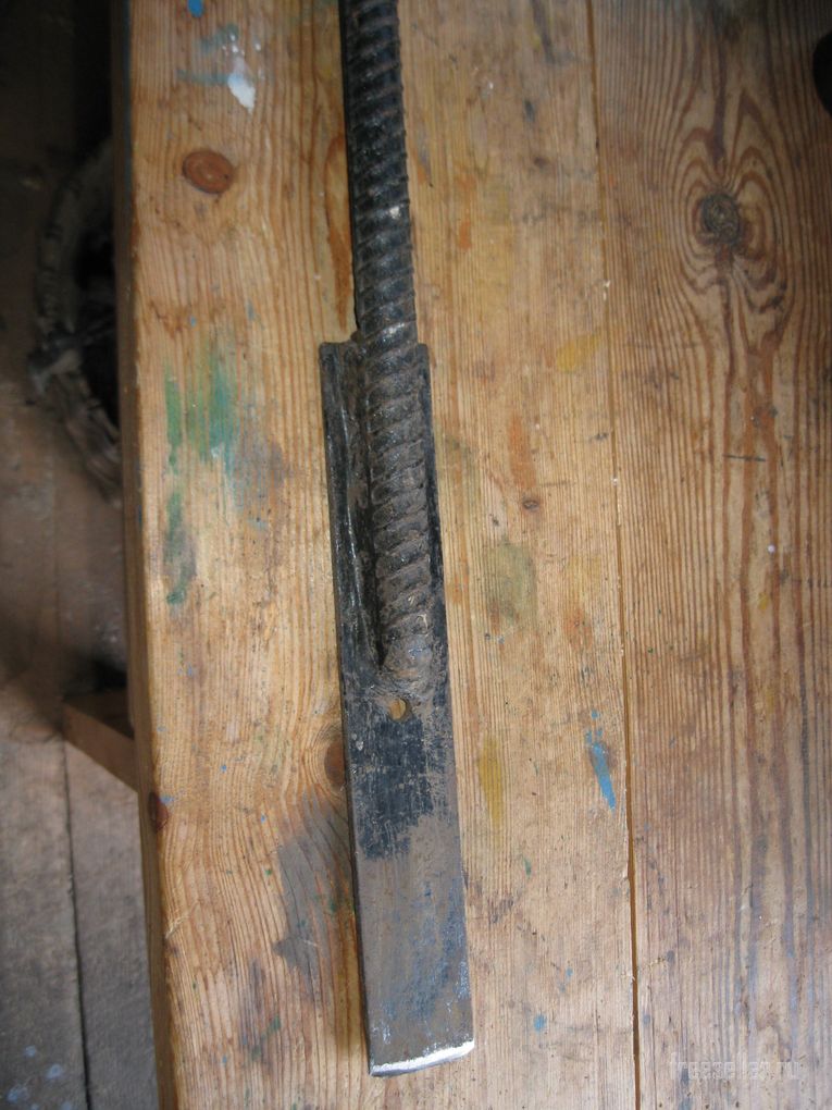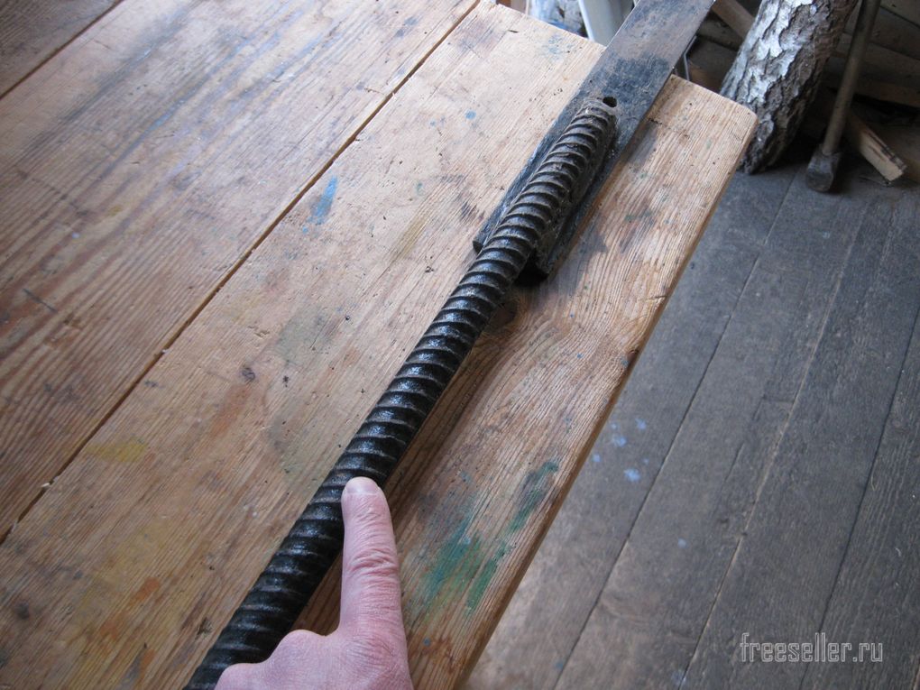 В качестве рукоятки для данного инструмента, мы взяли отрезок стальной арматуры, длиной 130 см, и диаметром 22 мм, отрезав его болгаркой.