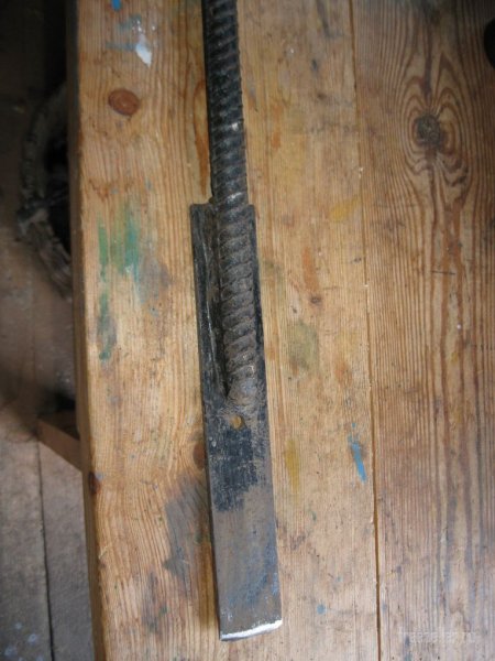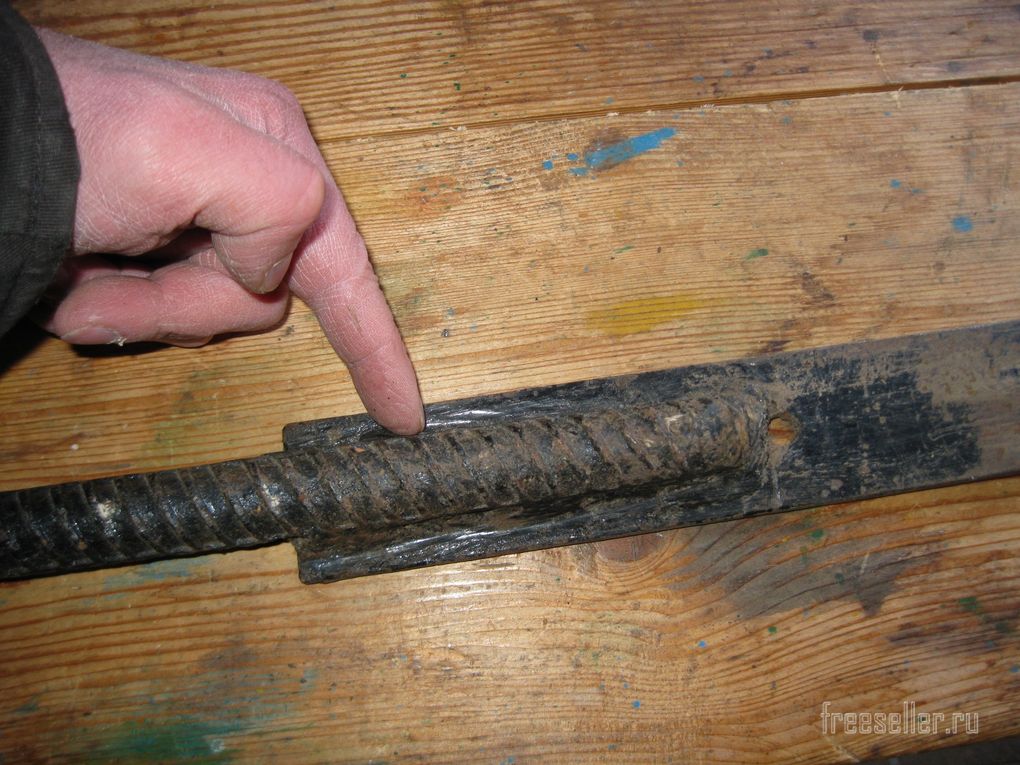 После этого осталось только приварить отрезок рессоры к прутку арматуры. Сварной шов при этом должен быть качественным и идти по всему периметру прутка.