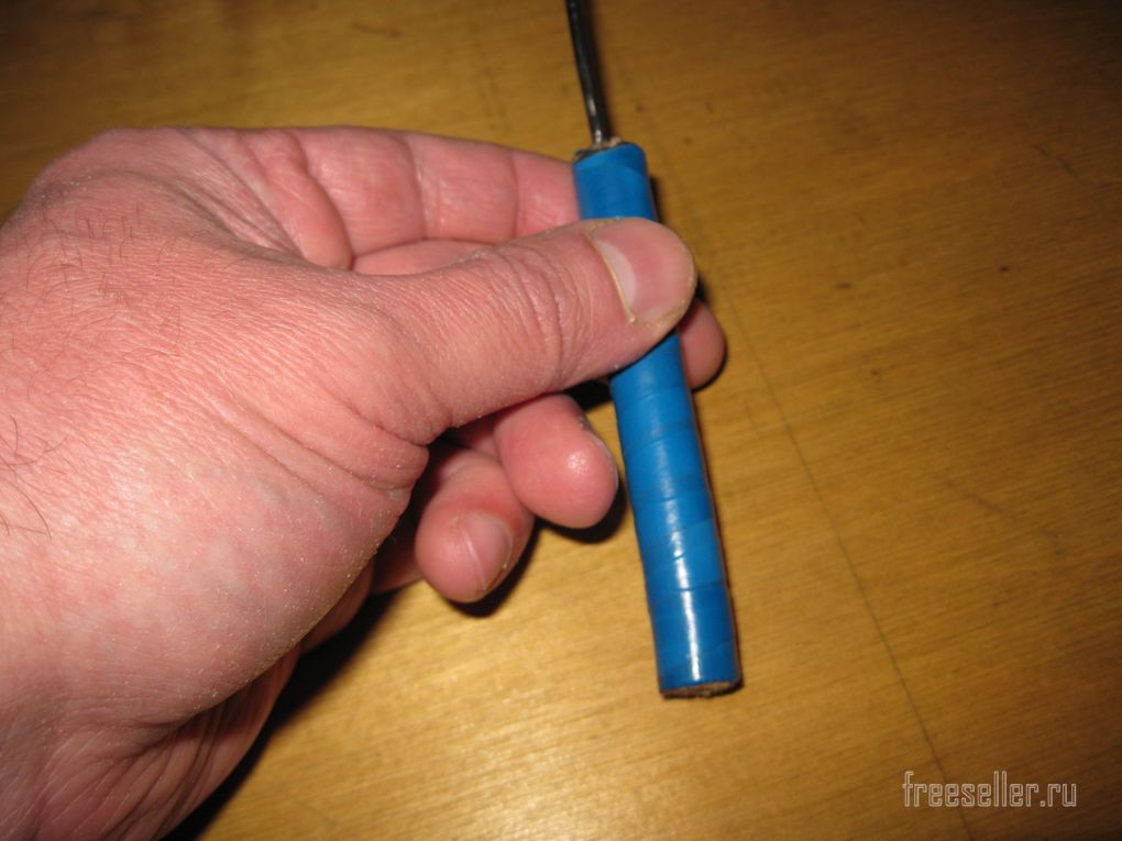 А на противоположный конец проволоки, я насадил отрезок резинового шланга в качестве рукоятки, обмотав его изолентой.