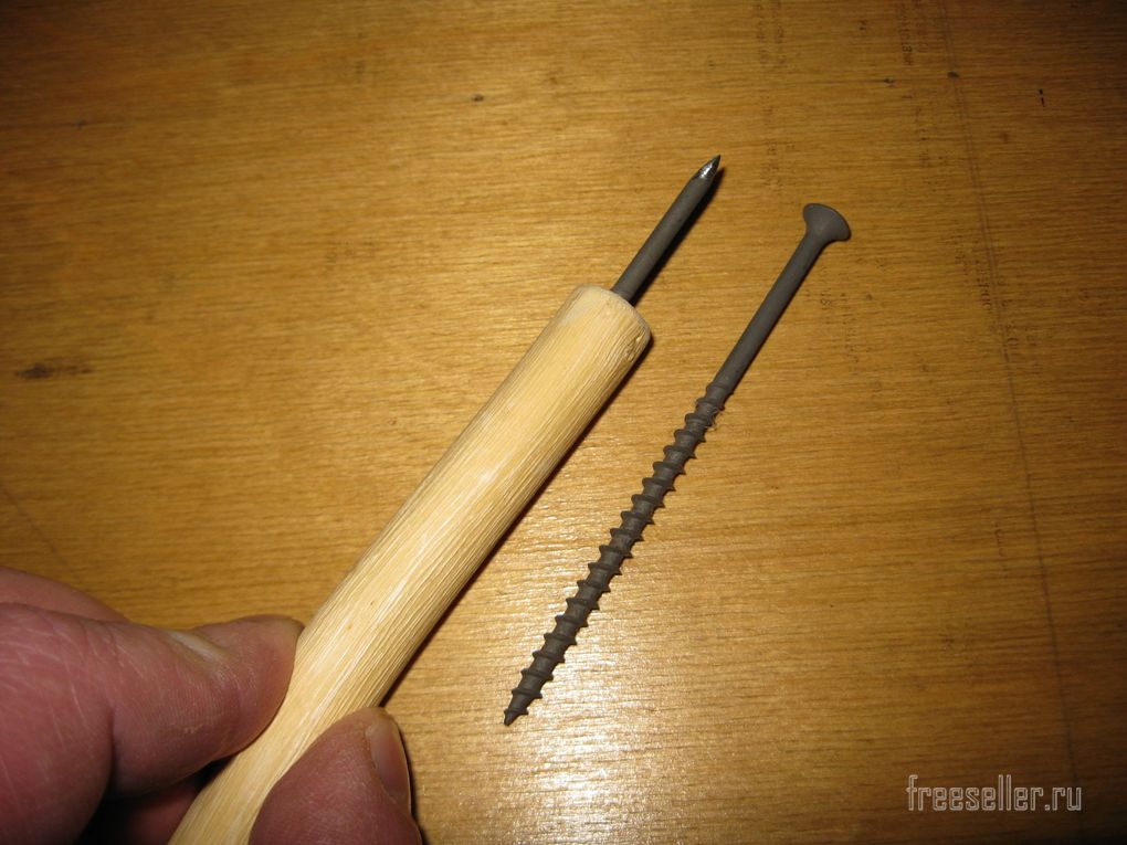 Кстати, такое шило получилось довольно прочным, поскольку шурупы по дереву, как правило, достаточно хорошо закалены.