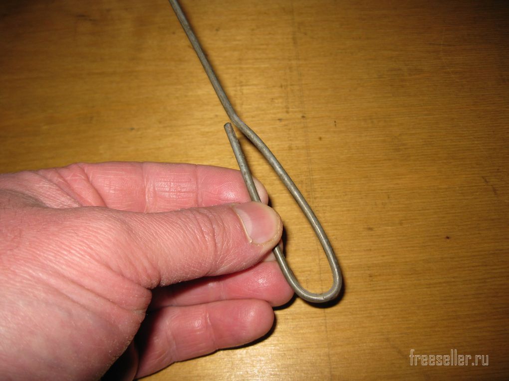 Сначала я выпрямил этот отрезок проволоки при помощи молотка, а затем пассатижами согнул на нем вот такую ручку в виде петли.