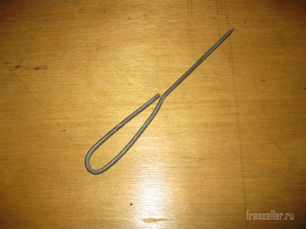 Это шило, я также сделал из отрезка проволоки. А чтобы данное шило было удобно разогревать на огне, то я сделал его достаточно длинным (где-то 30 см.).