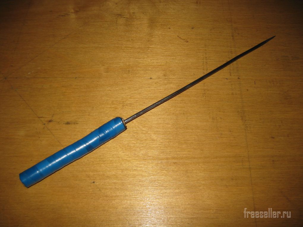 Это шило, пожалуй, самое простое в изготовлении. Сделано оно целиком из отрезка прочной стальной проволоки диаметром 3 см, и длиной около 30 см.