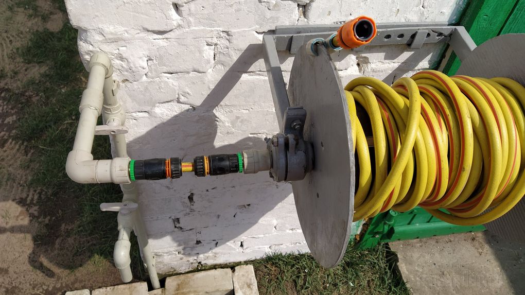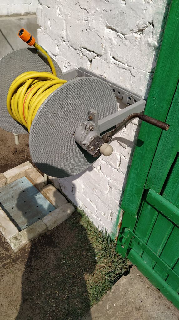 Катушка получилась увесистой, еще плюс 20 м. шланга с водой, в будущем, планирую купить шланг где то 40 м. и сделать для нее какую то тележку, чтобы было легко ее транспортировать, если она понадобится где-то в другом месте.