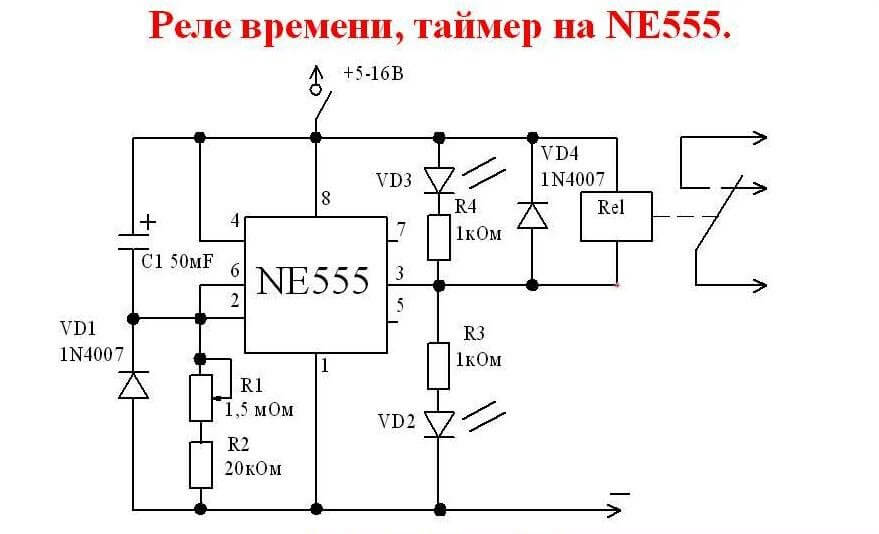 Также на данной схеме реле времени можно можно сделать реле задержки для электродвигателей и т.п.