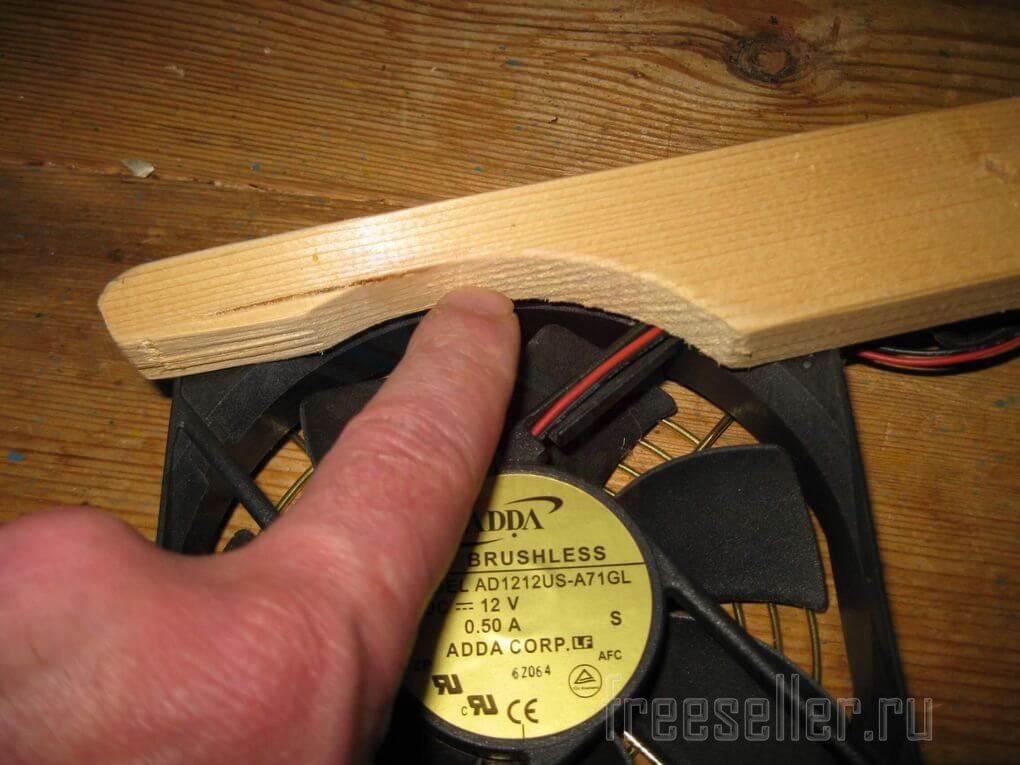 Для этого, на одной из сторон этого отрезка я выпилил полукруглое отверстие по форме кулера.