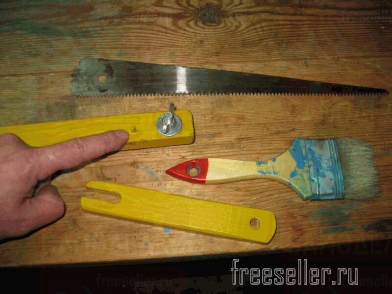 Причем для этой цели, я решил использовать не отдельную палку, а самодельную штангу, которую я уже несколько лет использую для работы с различными насадками, например, садовой ножовкой, кисточкой и многими другими самодельными насадками.