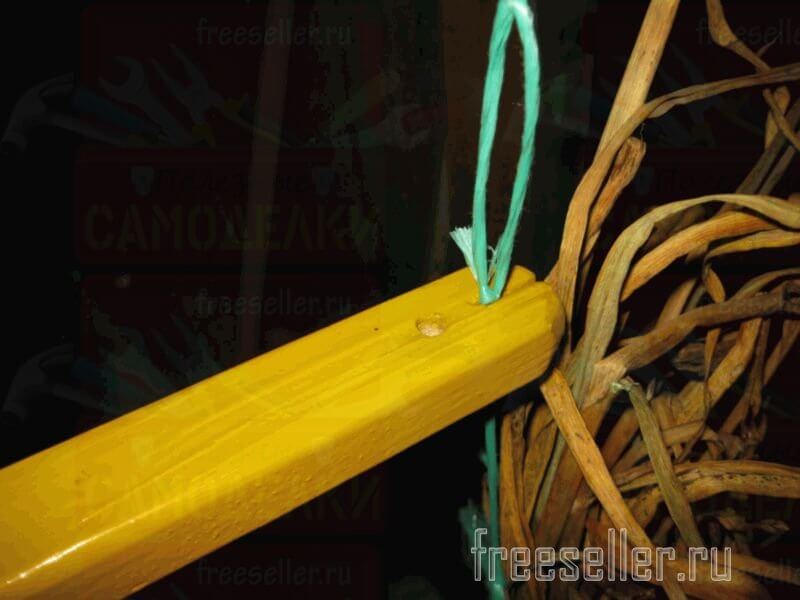 Поэтому, чтобы подвесить пучок, нужно просто продеть участок шпагата, расположенный ниже петли с узелком в прорезь на штанге.