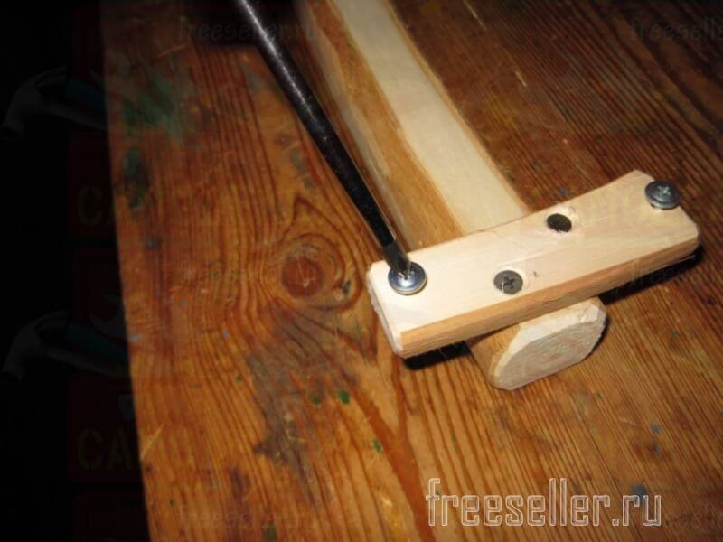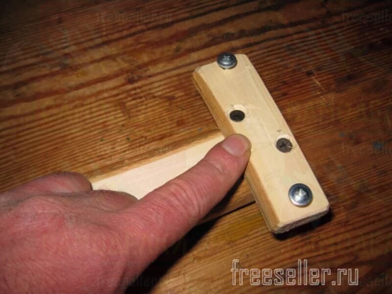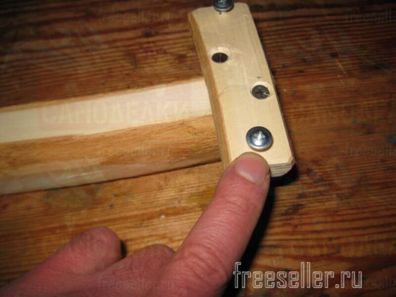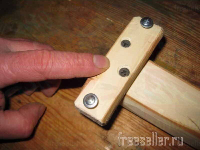 А для большей устойчивости, а также возможности регулировки (чтобы кормушка стояла устойчиво), я вкрутил в предварительно засверленные глухие отверстия по краям этих дощечек, шурупы с прессшайбой.