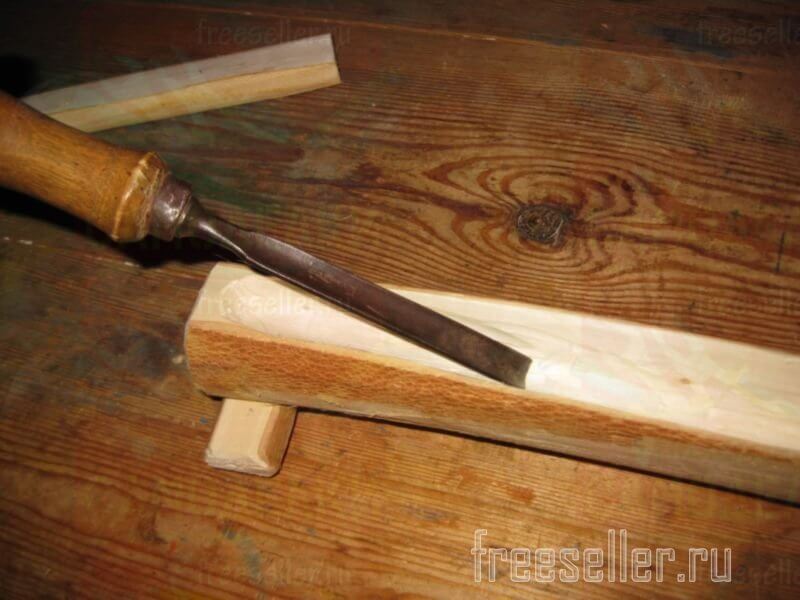 Затем, я обстрогал с двух сторон отрезок тонкого сука липы.