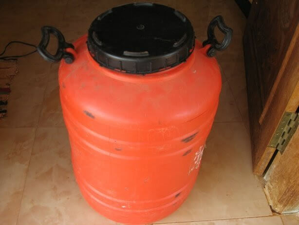 Подготавливаем 50 литровую пластиковую емкость, и срезаем при помощи ножовки верхнюю часть. Данная емкость будет использоваться в качестве варочного агрегата.