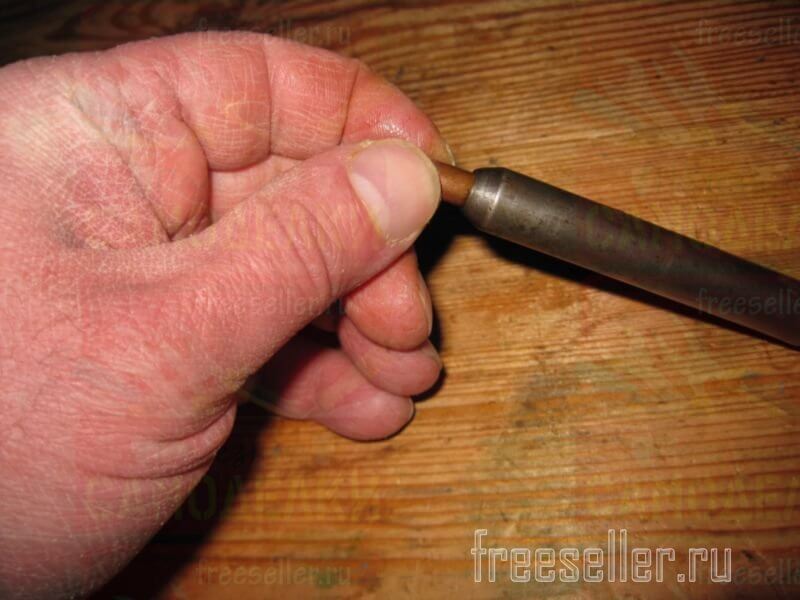 Тем не менее, этот недостаток также можно устранить, если нарастить медную трубочку или насадить на ее конец какой-либо набалдашник, например, в виде подходящей гайки. В этом случае кернером станет удобно пользоваться, да еще и масса трубки станет больше, то есть ее удар станет сильнее и, соответственно, метка оставляемая кернером, станет более четкой.