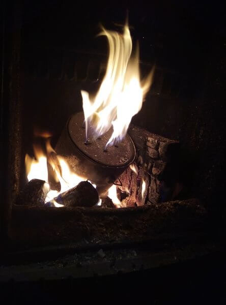 Закрываю крышкой плотно и ставлю в котел, когда он уже разогрелся и топится.