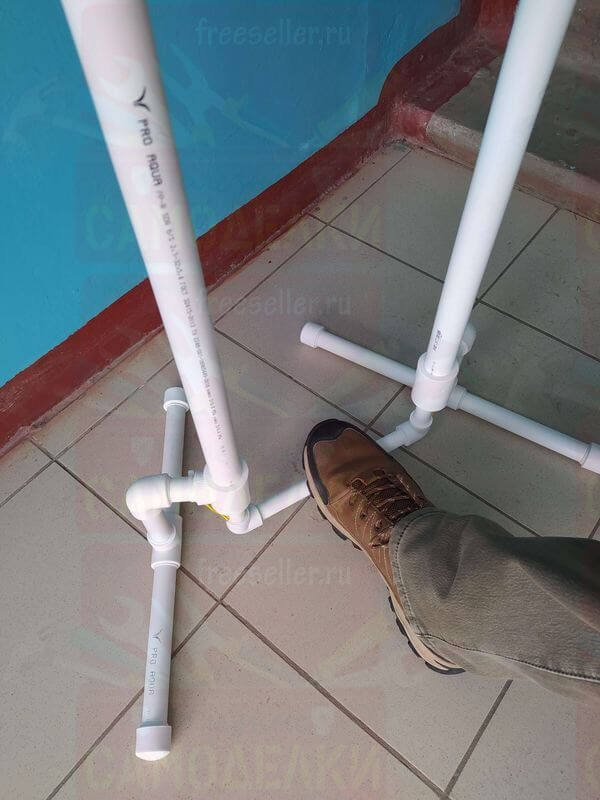 Ножки стойки сделал не параллельным для удобства размещения в углу помещения.