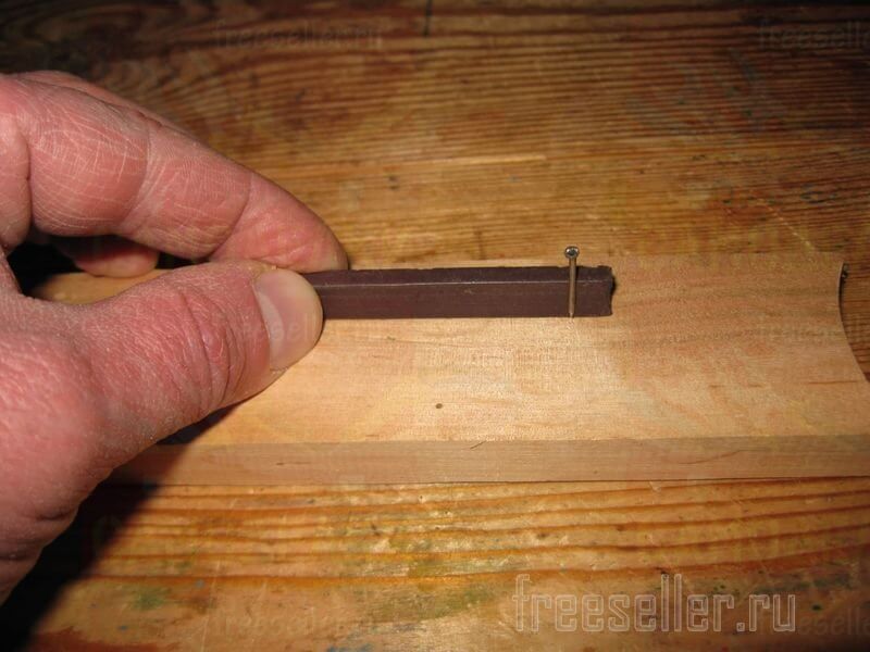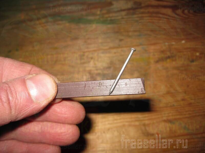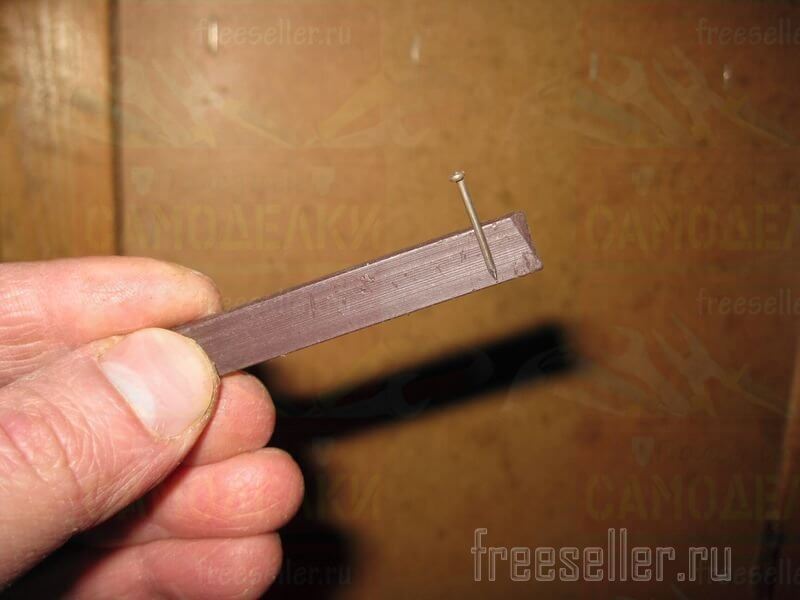 Я отломил полоску длиной примерно 7 см. Она и будет служить нам в качестве приспособления для забивания мелких гвоздиков.