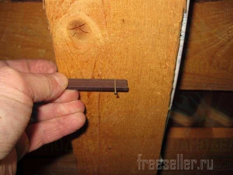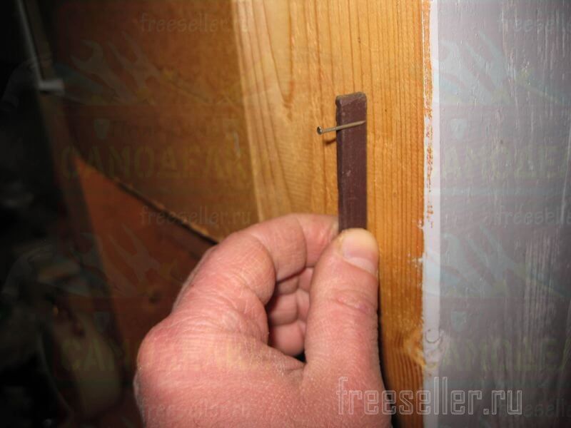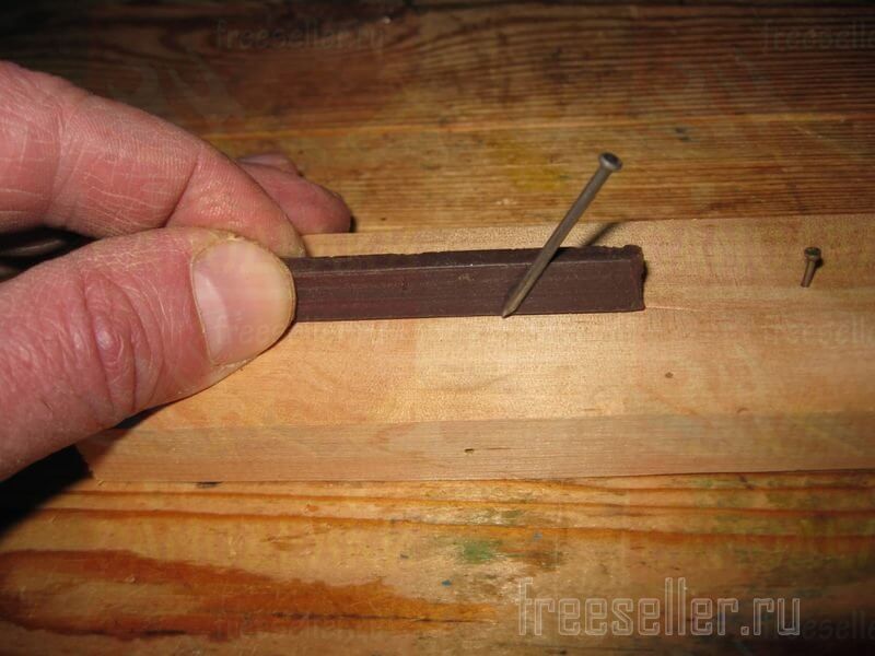 А затем, установив полоску с гвоздиком на поверхность, аккуратно забить его, так, как было описано выше.