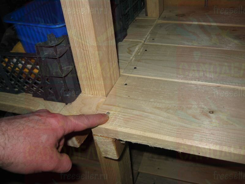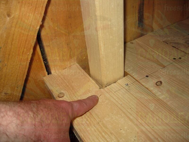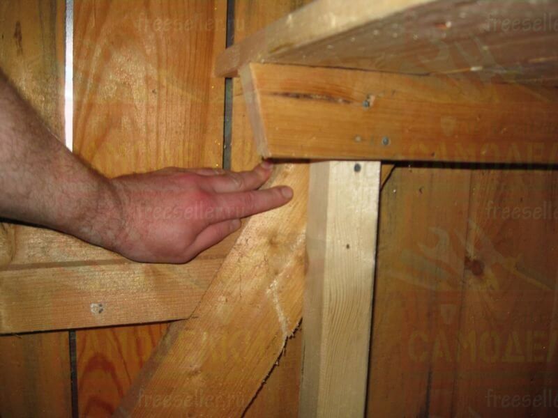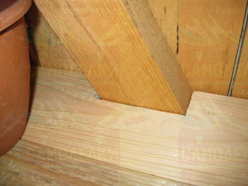 Для крепления этих досок, на стойки, а также на продольные перекладины, были прибиты небольшие отрезки брусков.