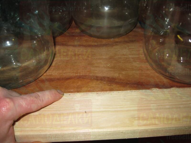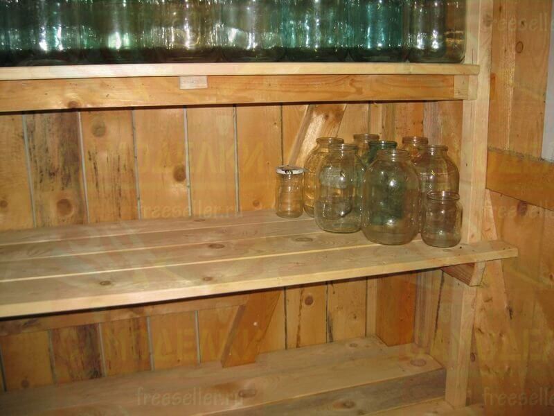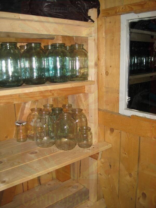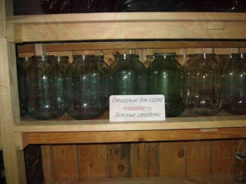 В правой части стеллажа, на второй полке, будут размещаться банки, которым не хватило место на третьей полке.