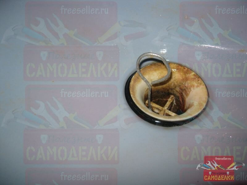 Тем не менее, я уже давно заметил, что очень часто, изначальный засор возникает в самой верхней части слива, прямо под решеткой. Это связано с тем, что за решетку слива, частенько зацепляются нитки, волосы, шерсть животных и повисают там. А уже за тем, на них оседает новый мусор, часто создавая целые комки, которые начинают препятствовать нормальному сливу воды. Причем со временем, такой комок мусора, может опуститься ниже в сифон, и уже там застрять. А в этом случае, вытащить его будет уже значительно сложнее.
