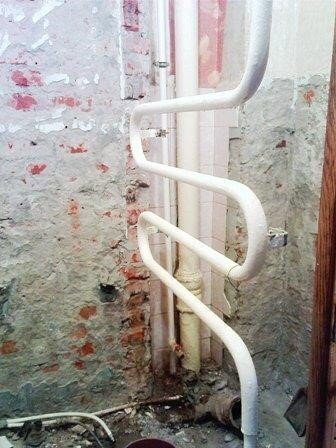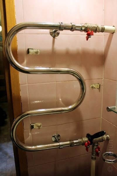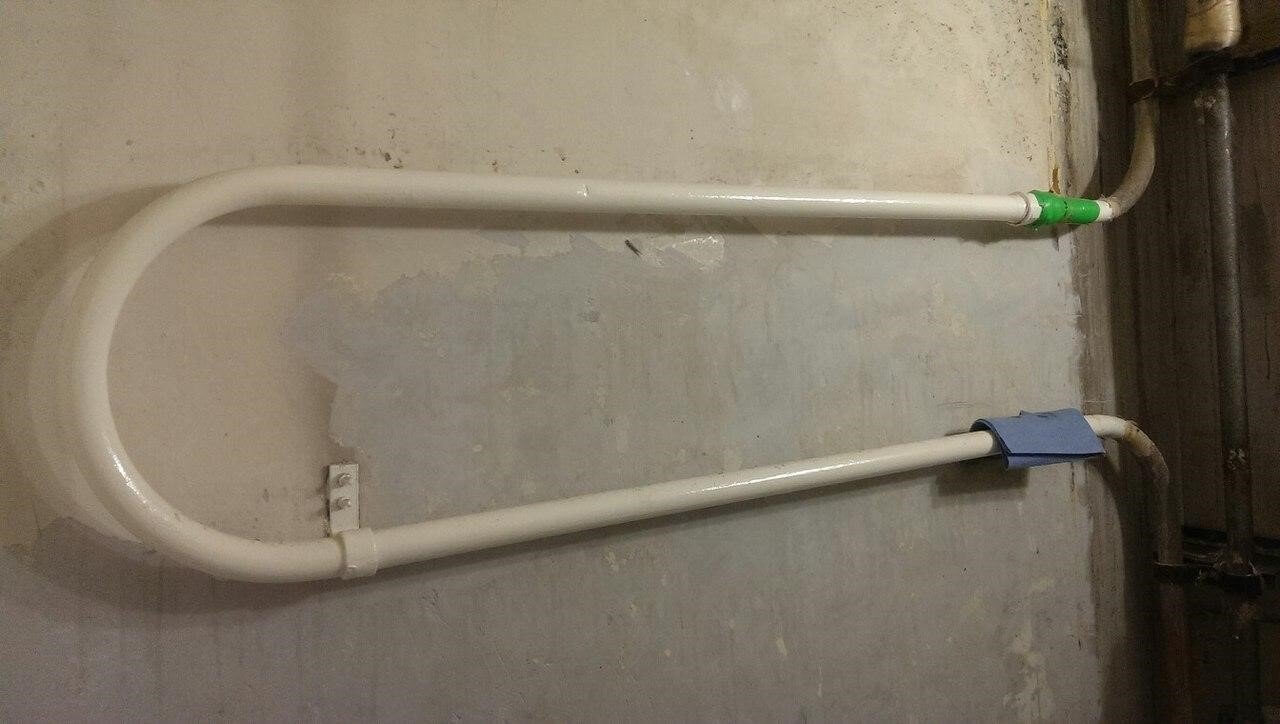 Новый полотенцесушитель, являющийся частью стояка (неправильная установка)