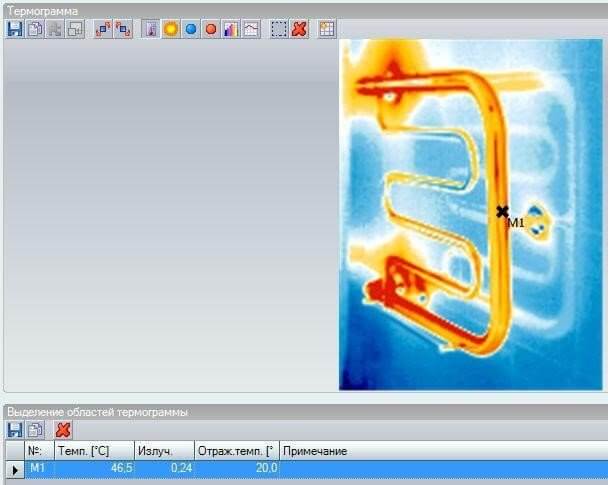 Термограмма полотенцесушителя, работающего на естественной циркуляции.