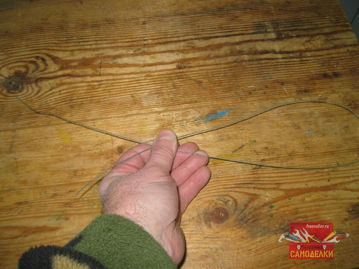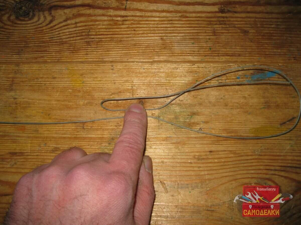 Для этого, я сначала отогнул правый конец проволоки к левому, сделав петлю.