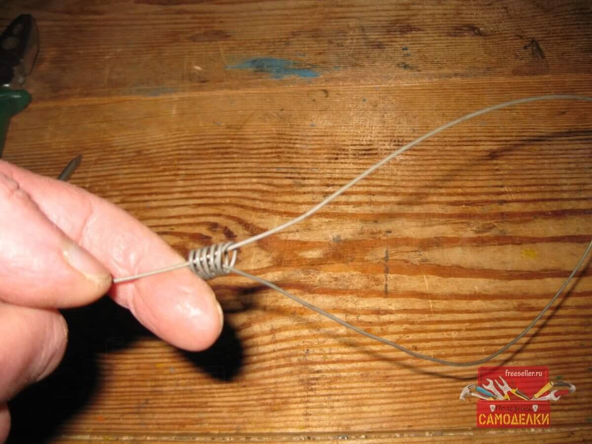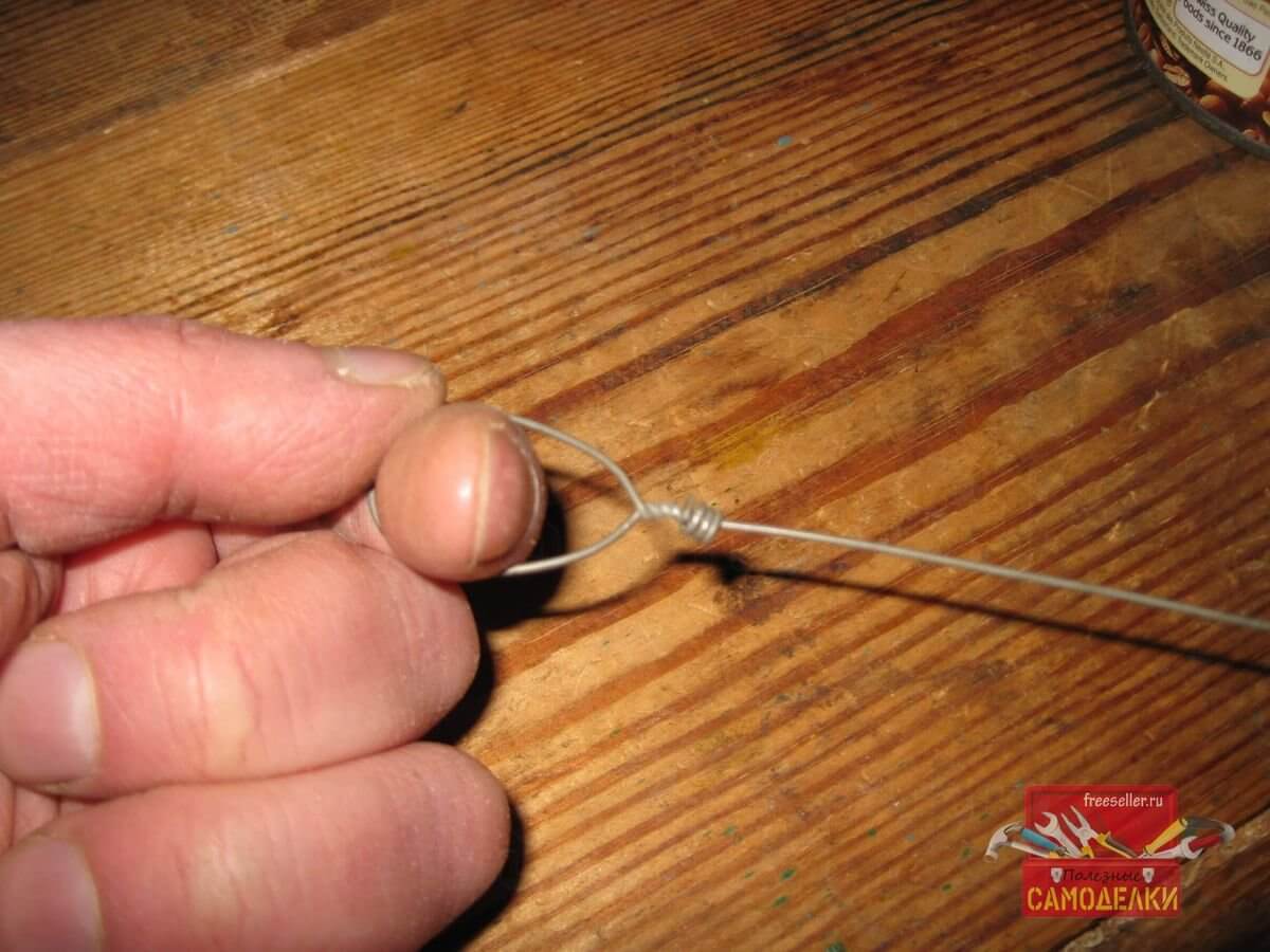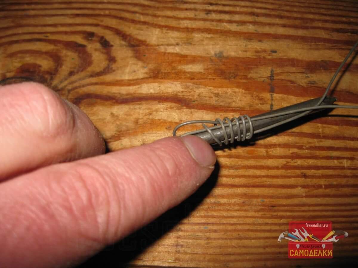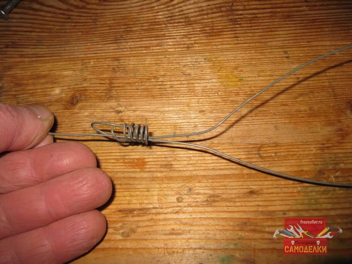 А затем просунул кончик проволоки в петлю, используя длинногубцы.
