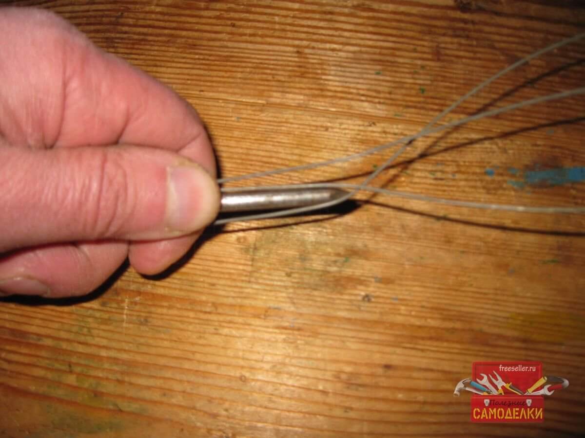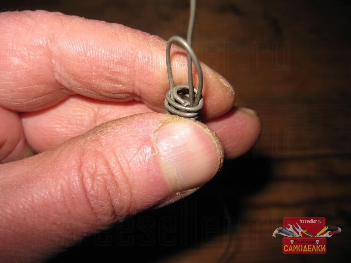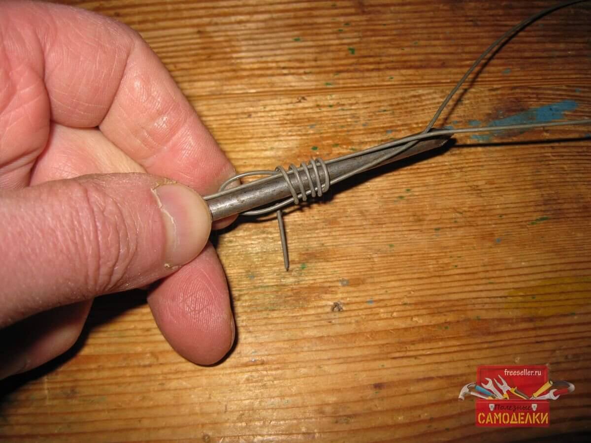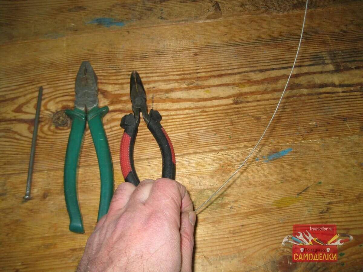 А затем просунул кончик проволоки в петлю, используя длинногубцы.
