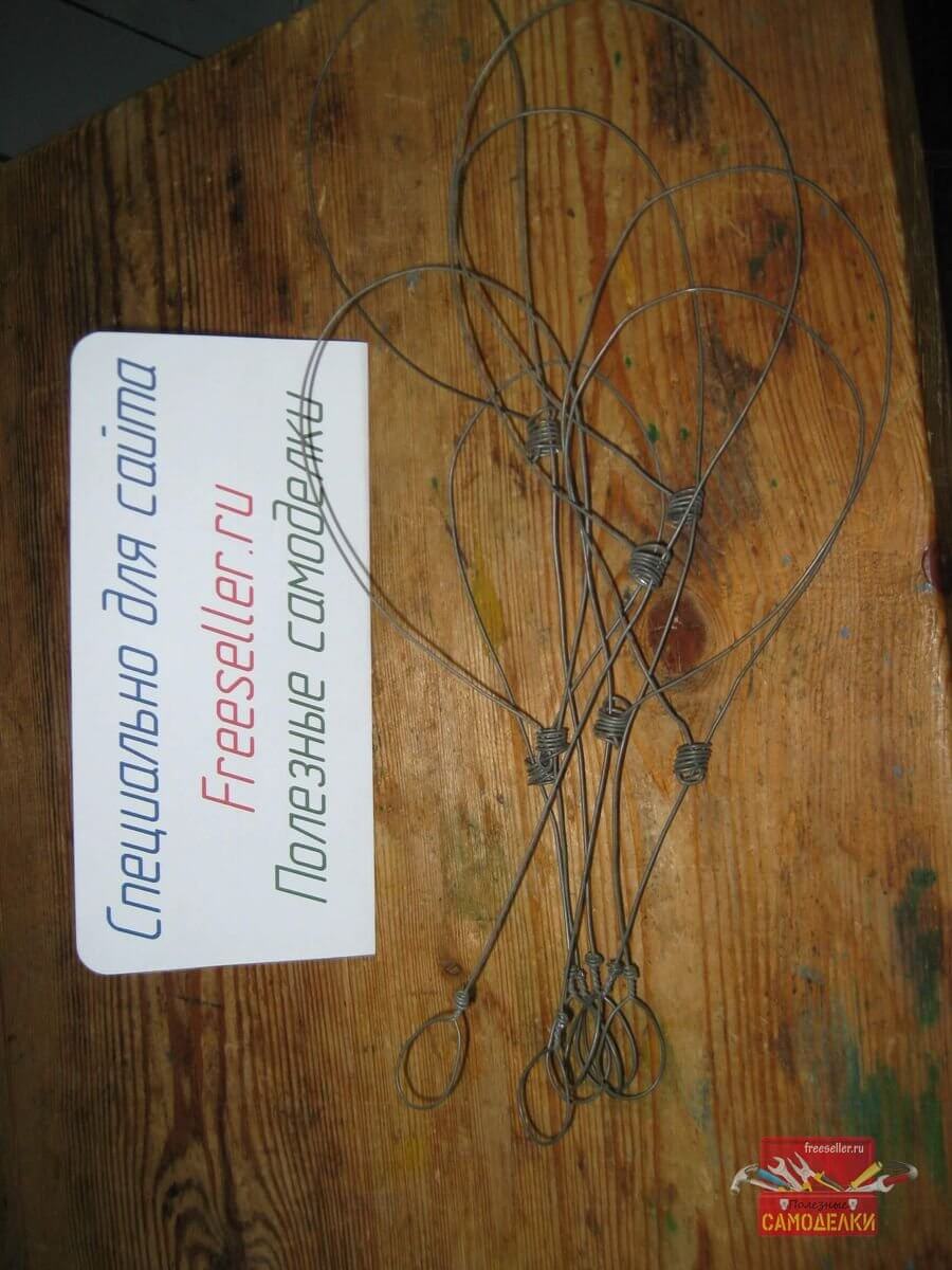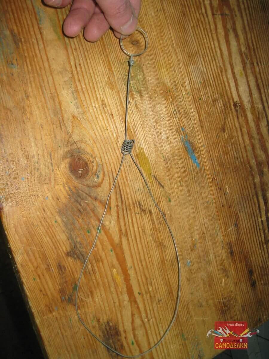 При этом очень большим преимуществом петли-удавки сделанной из проволоки, перед веревочной, является то, что она очень легко затягивается, но также очень легко ослабляется.