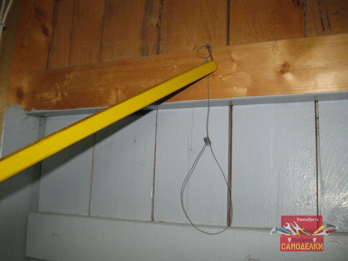 Эту штангу я использовал для подвешивания к потолку, или же снятия с потолка веников, еще с веревочными подвесами. Это бывает очень удобно, если веники приходится подвешивать к высокому потолку или же когда к месту подвешивания бывает трудно подойти.
