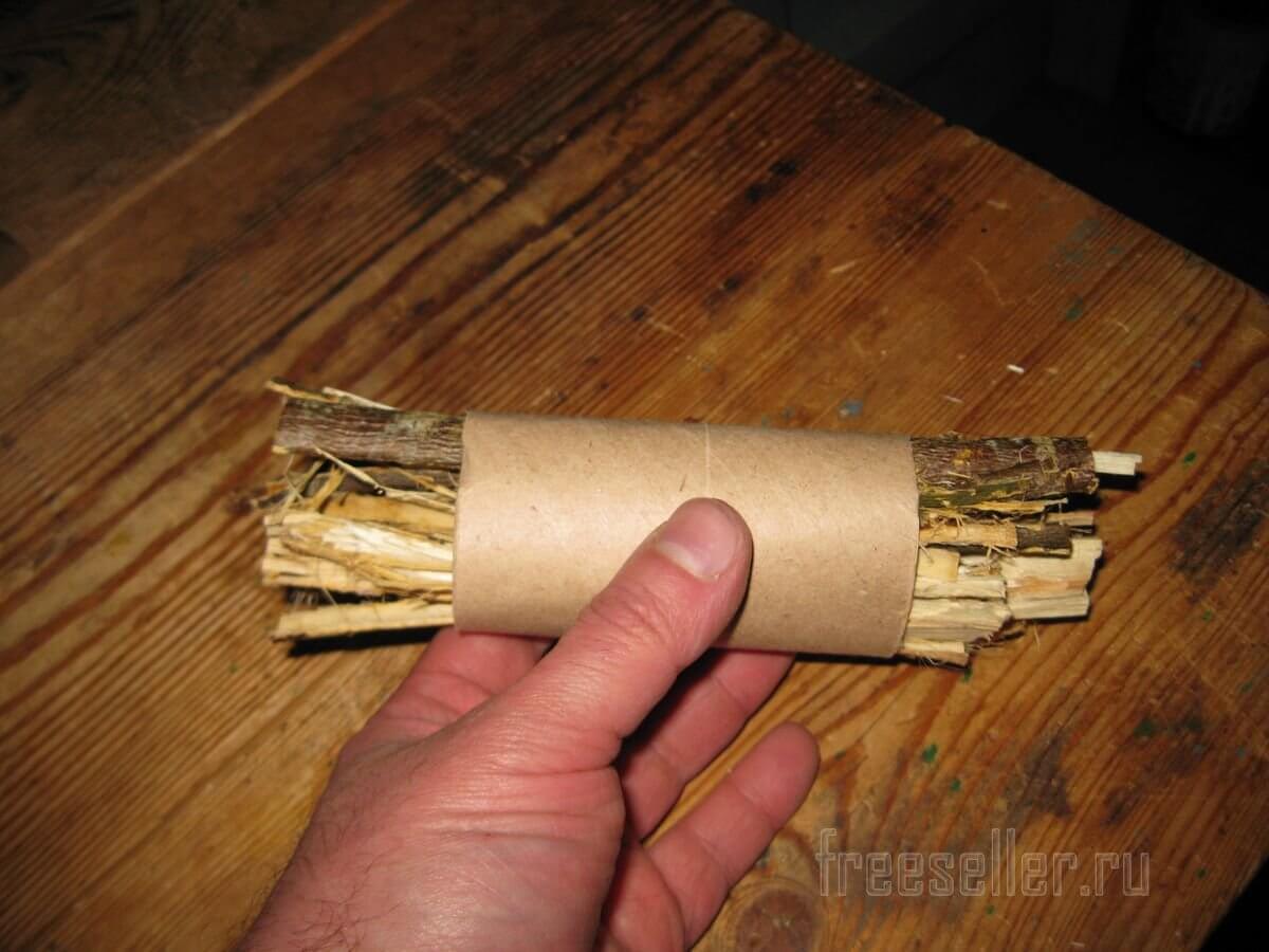 Тонкие и длинные фрагменты веток, я отбирал, хорошенько просушивал и использовал для разжигания костра. Хранил я их, вставляя в картонные втулки от туалетной бумаги, которые также использовал для розжига костра.