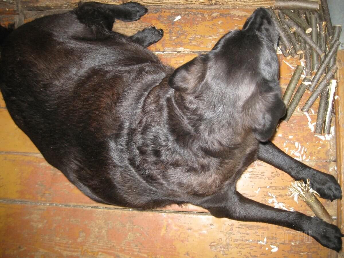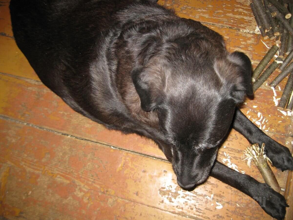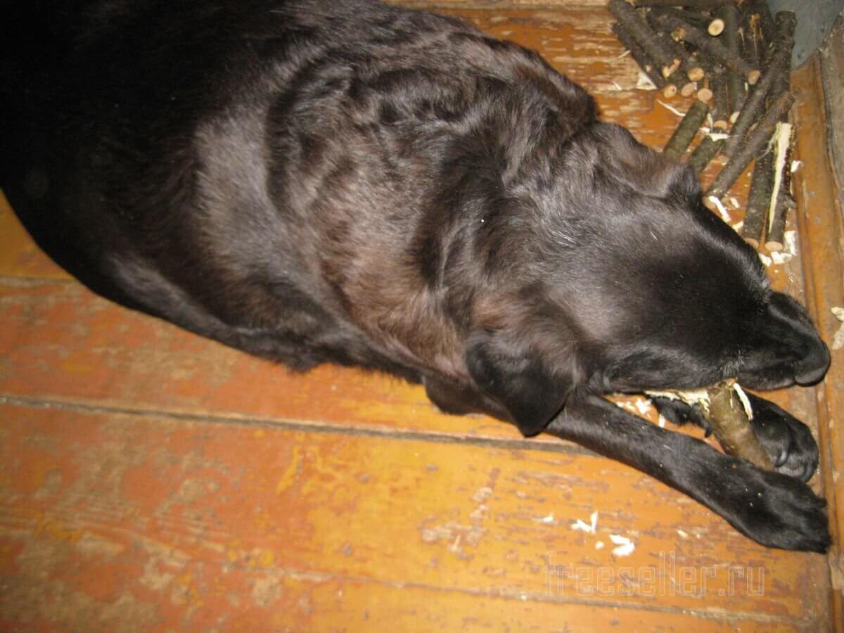 Естественно, давая собаке грызть обрезки веток, я делал это вне дома, в теплое время года на улице, а в холодное на старой веранде. Вот, кстати, пример того, как собака грызет ветки на веранде.