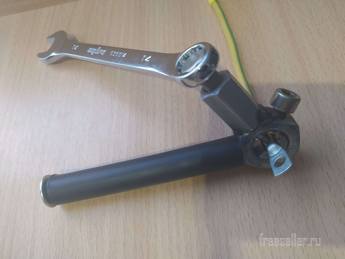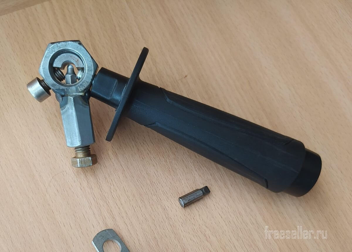 В конце испытаний поменял самодельную ручку из мебельного болта на ручку от болгарки.