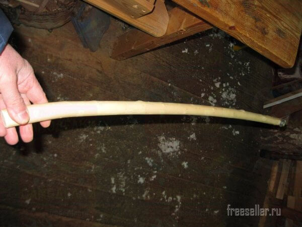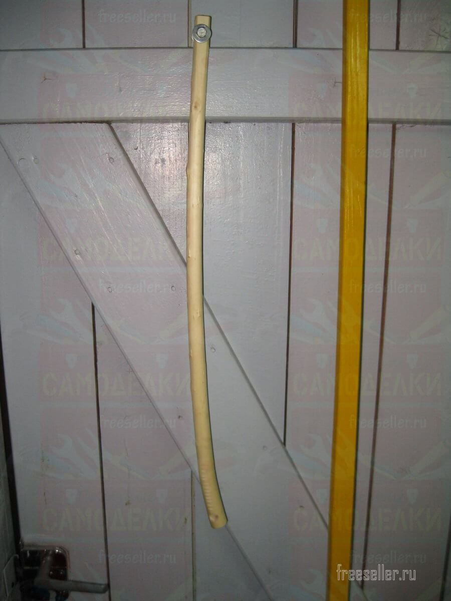 И в результате еще прошедшей зимой, я сделал такую рукоятку. Причем сделал я ее из ошкуренной и хорошо высушенной ветки ветлы, оставшейся от прошлогодней весенней обрезки деревьев в саду и на участке.