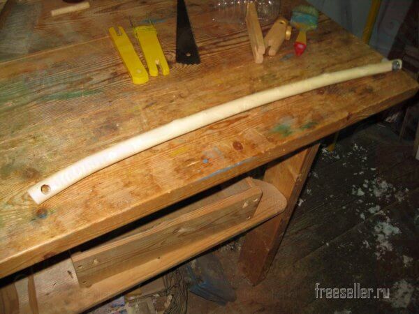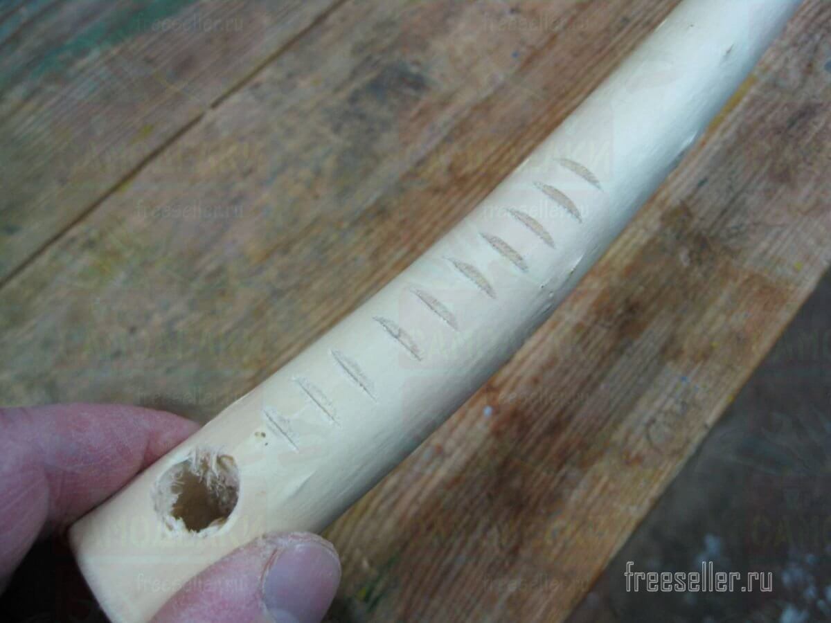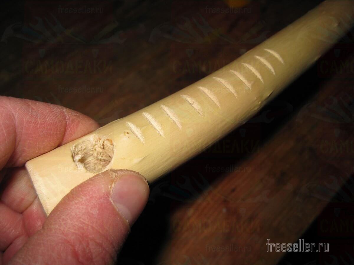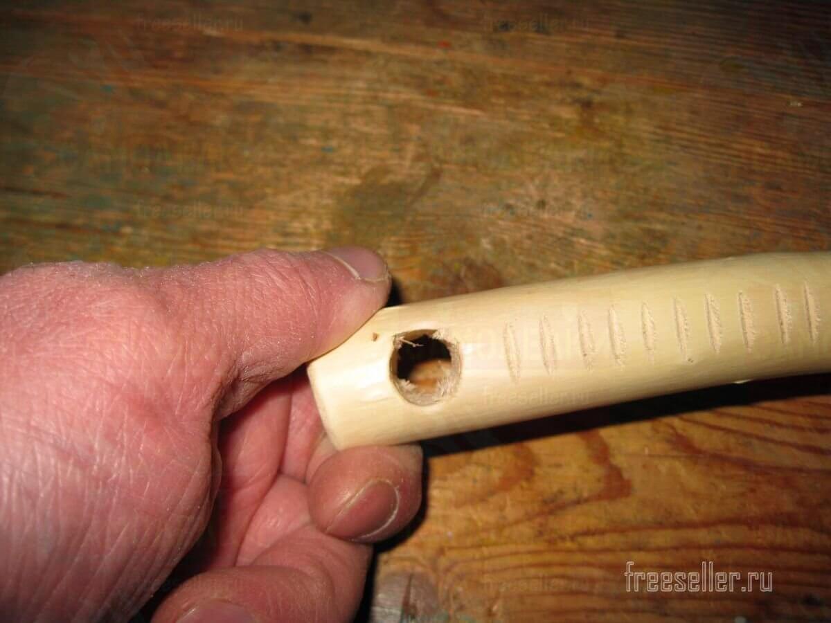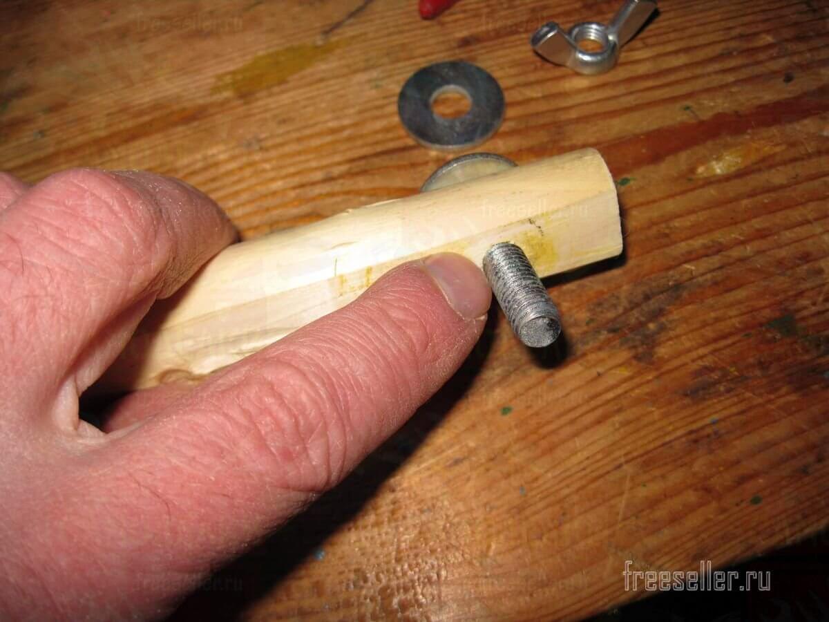 Затем, при помощи напильника по дереву с острой кромкой, я сделал на толстом конце рукоятки насечки, для того, чтобы рукоятку было удобнее держать рукой.