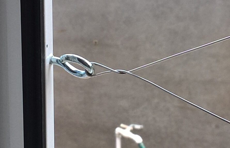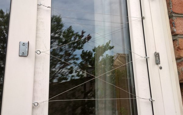 Поворот крюков, о которых говорилось выше, позволяет быстро снять часть ограждения, ослабить его, вывинтить пару колец-шурупов, и получить проём для эвакуации.