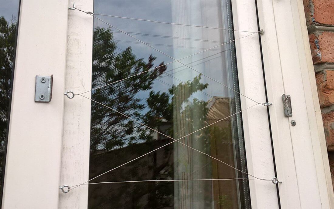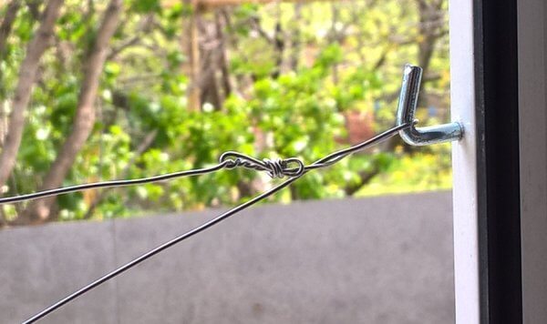 С интервалом около 15 см ввинтил их во внешние бортики рамы окна. Предварительно просверлив отверстия.