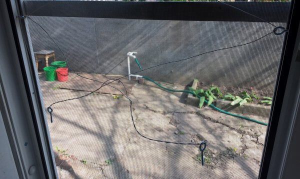 Концы проволоки связал плоскогубцами в верхней части ограждения.