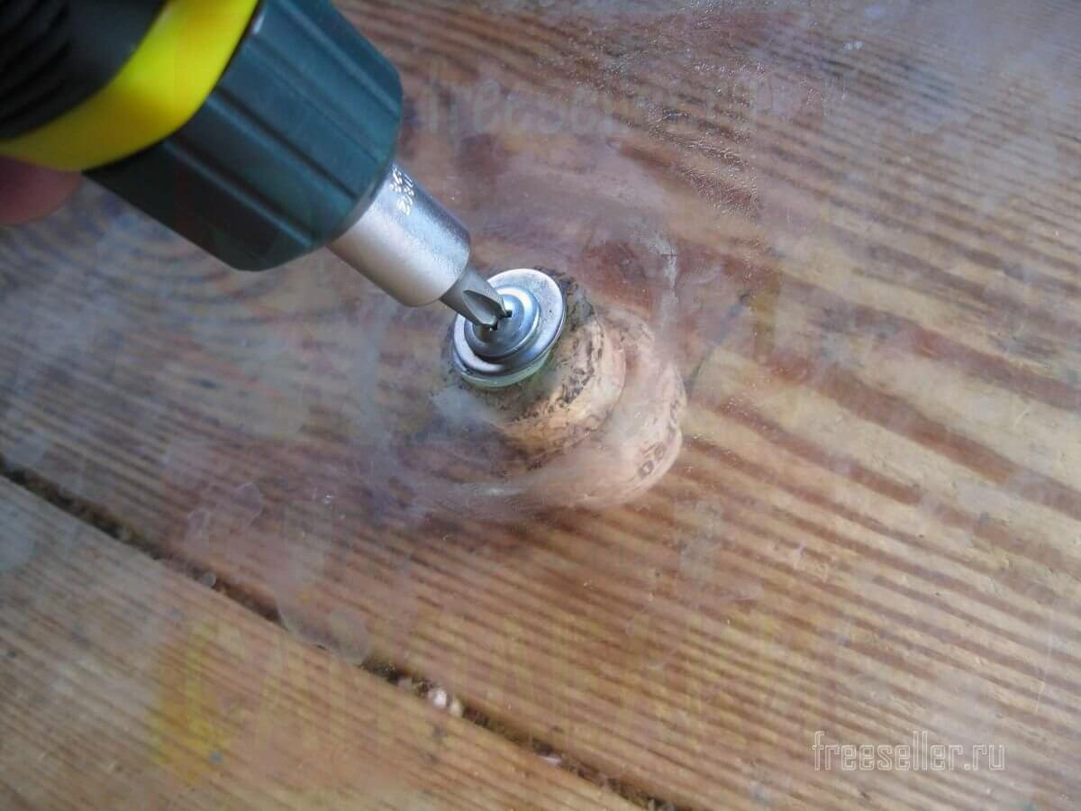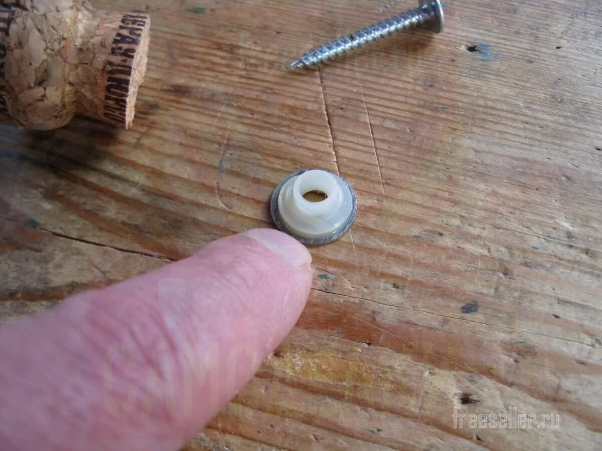 Ну, а далее просто прикручиваем эту пробку к крышке с внутренней стороны, при помощи шурупа с прессшайбой.