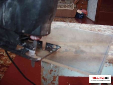 Выпиливаем наш коврик по нарисованному контуру, для этого я использовал электролобзик. Но при наличии дремеля это делается проще и быстрее.