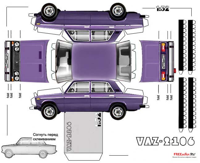 Бумажная модель автомобиля Ваз 2106 (шестерка).