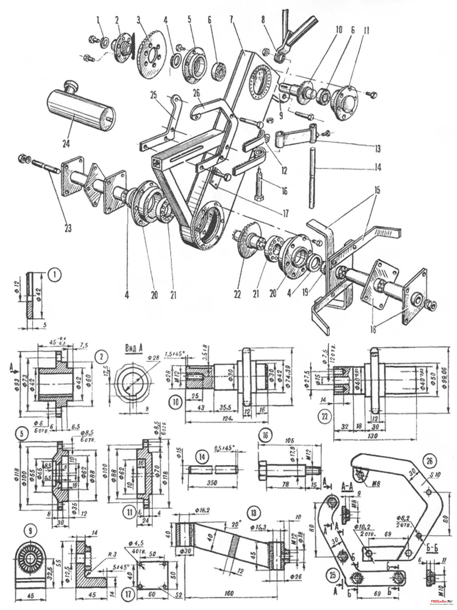 А теперь о конструкции отдельных узлов и деталей мотофрезы, о том, как и из чего они сделаны: