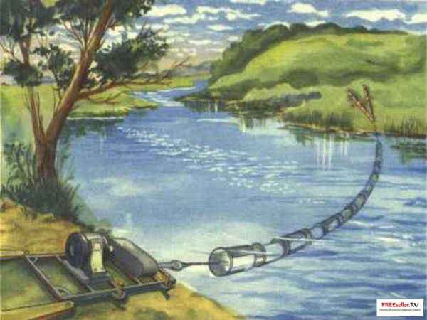 При менее мощных гидростанциях (1-2 кВт), работающих на скоростях 1,5-2 м сек, можно применять трос диаметром 10-12 мм.