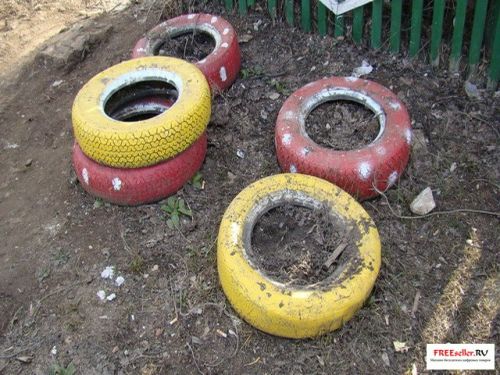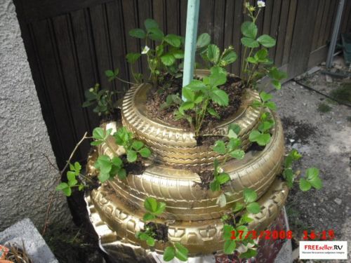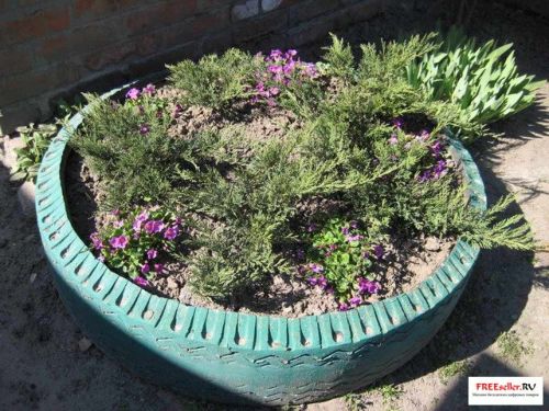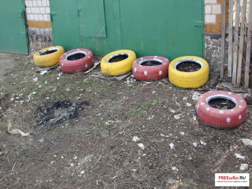 Делаем самодельную цветочную клумбу из старых автомобильных покрышек.