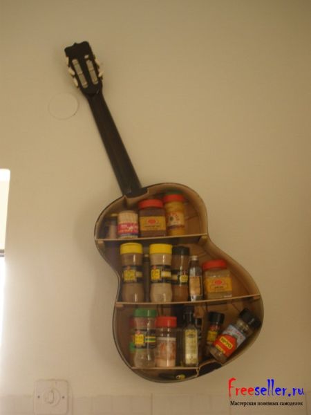 Положим в корпус гитары банку со специями, которые предполагается там хранить, и отмечаем высоту необходимой полки.