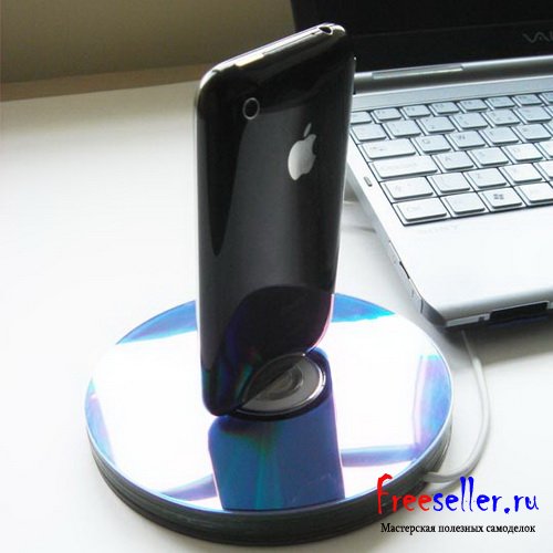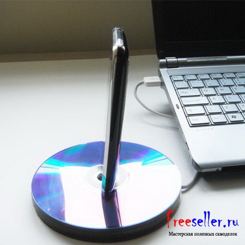 Оригинальная подставка с зарядкой для IPhone и других мобильных телефонов из старых CD дисков.