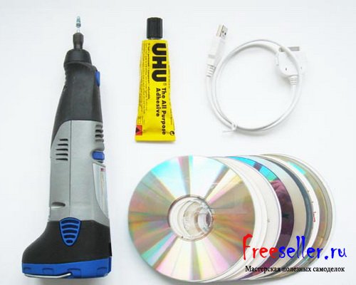 На 3-4 дисках необходимо прорезать канал от края до середины с отверстием шириной на 1 -2 мм больше ширина USB кабеля.