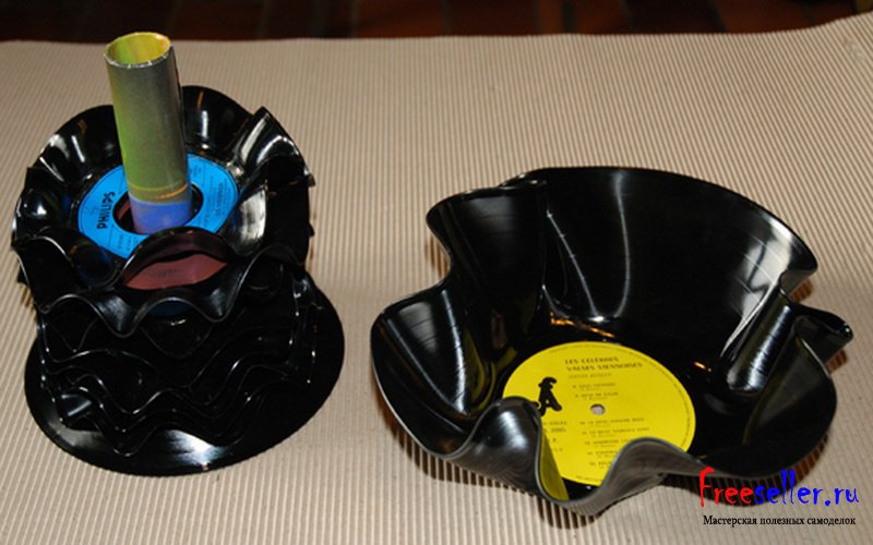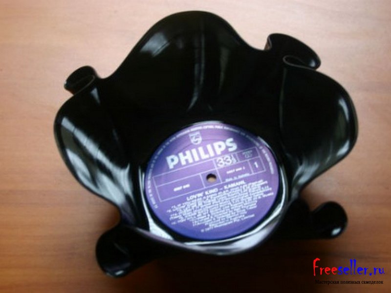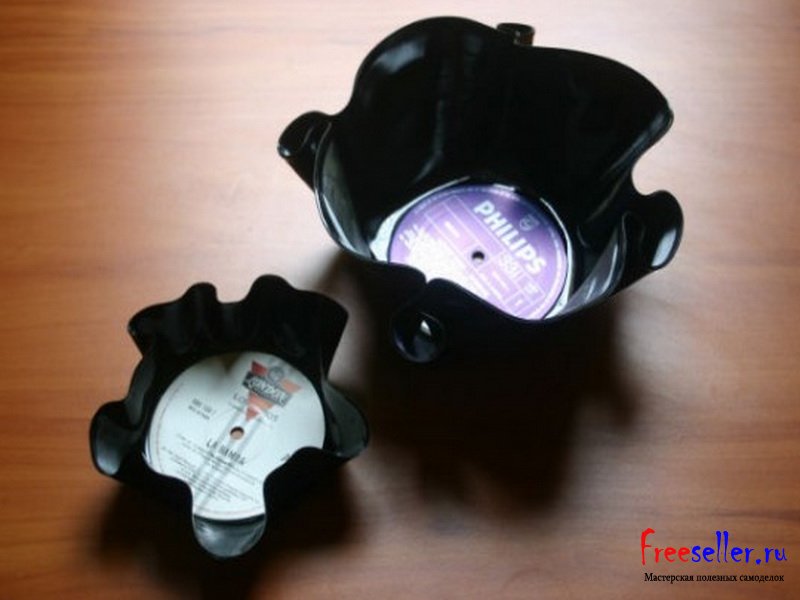 Готовые чаши из пластинок можно использовать для хранения мелких вещей: мелочи, ключей и т.д.