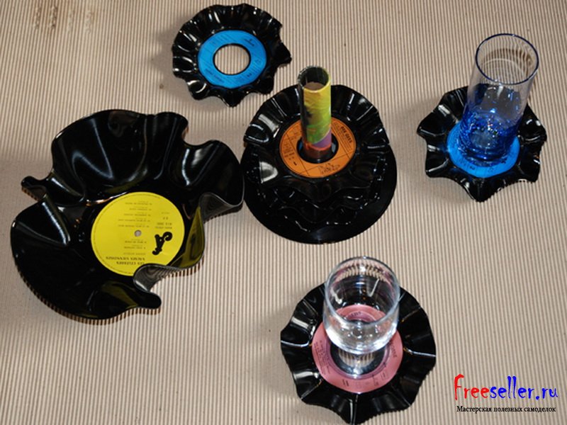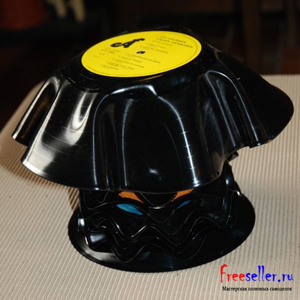 Чашки из пластинок изготовить своими руками довольно просто: Пластинку необходимо размягчить в горячей воде, и сгибанием разгибанием придать ей форму чаши. Подробнее о разогреве пластинок горячей водой описано в этой статье>>>