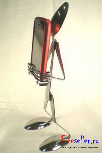 3) Подставка для телефона из ложек и вилок.